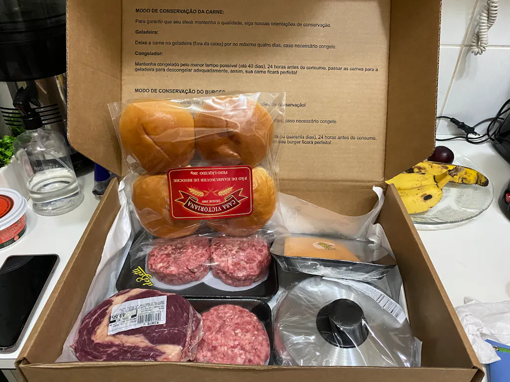 4 burgers dry aged de 180g acompanhados de pão de brioche casa victoriana e (4 fatias) 120 gramas de Queijo Cheddar Inglês.